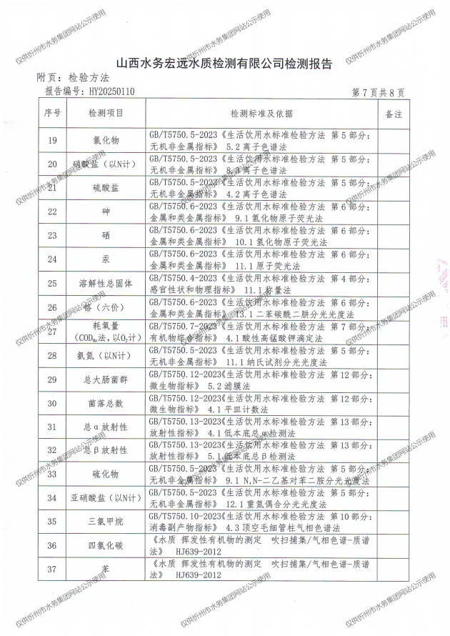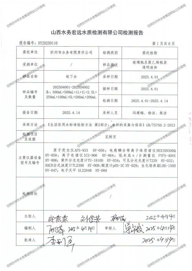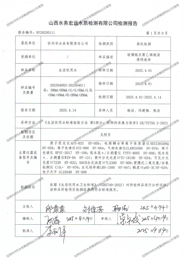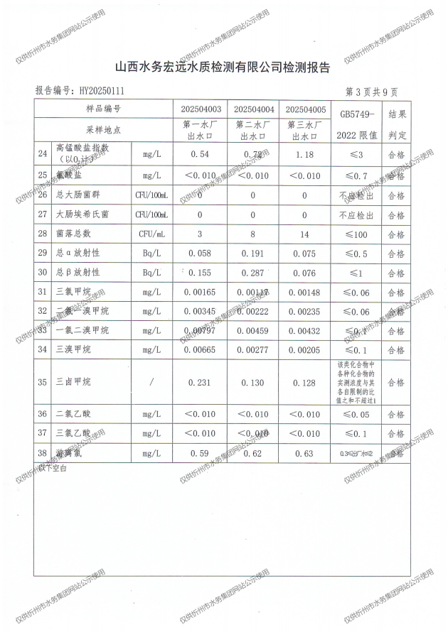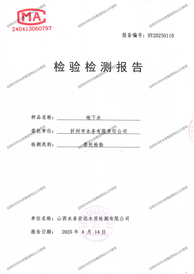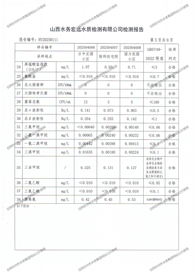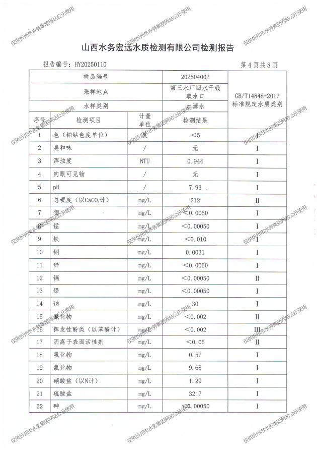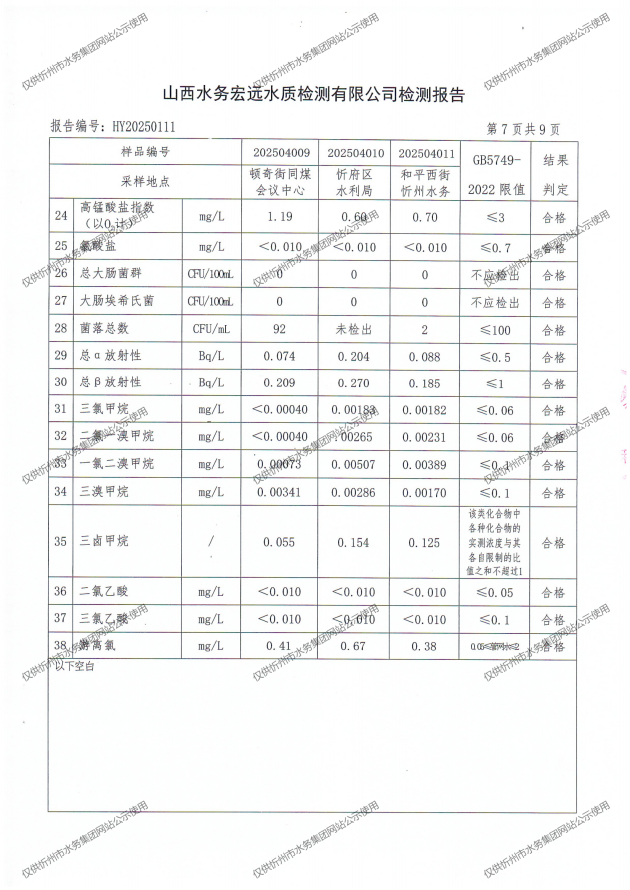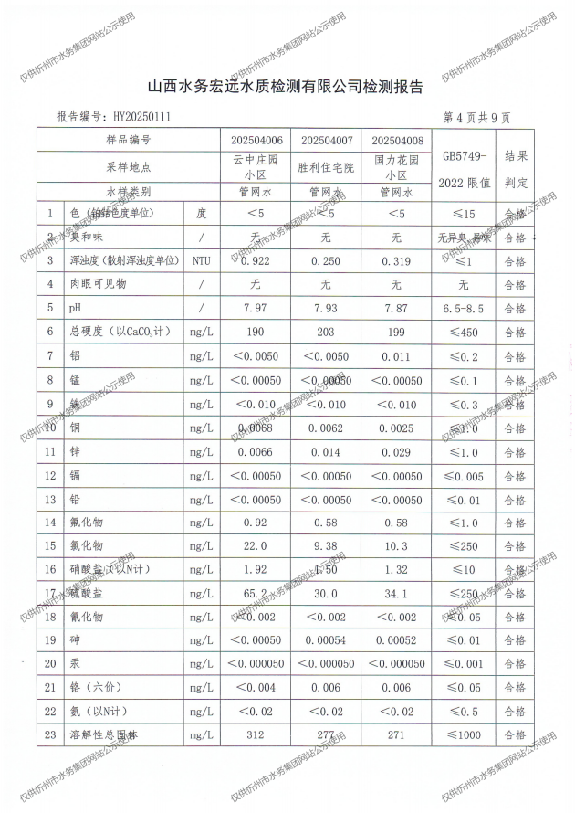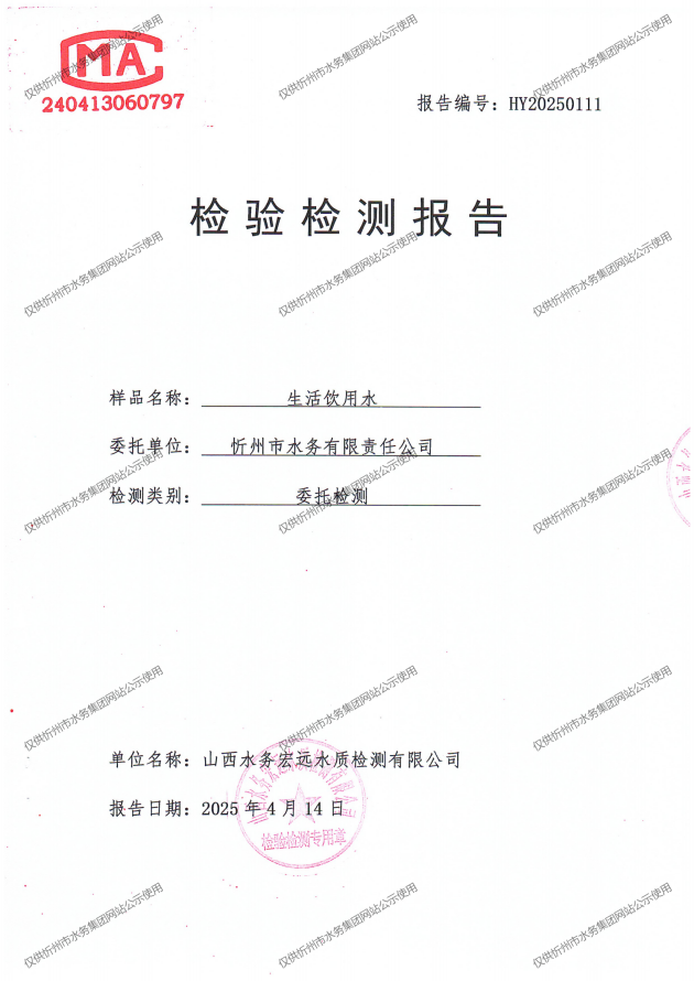 忻州城區公共供水水源水、出廠水、管網水、管網末梢水2025年4月份水質信息公示