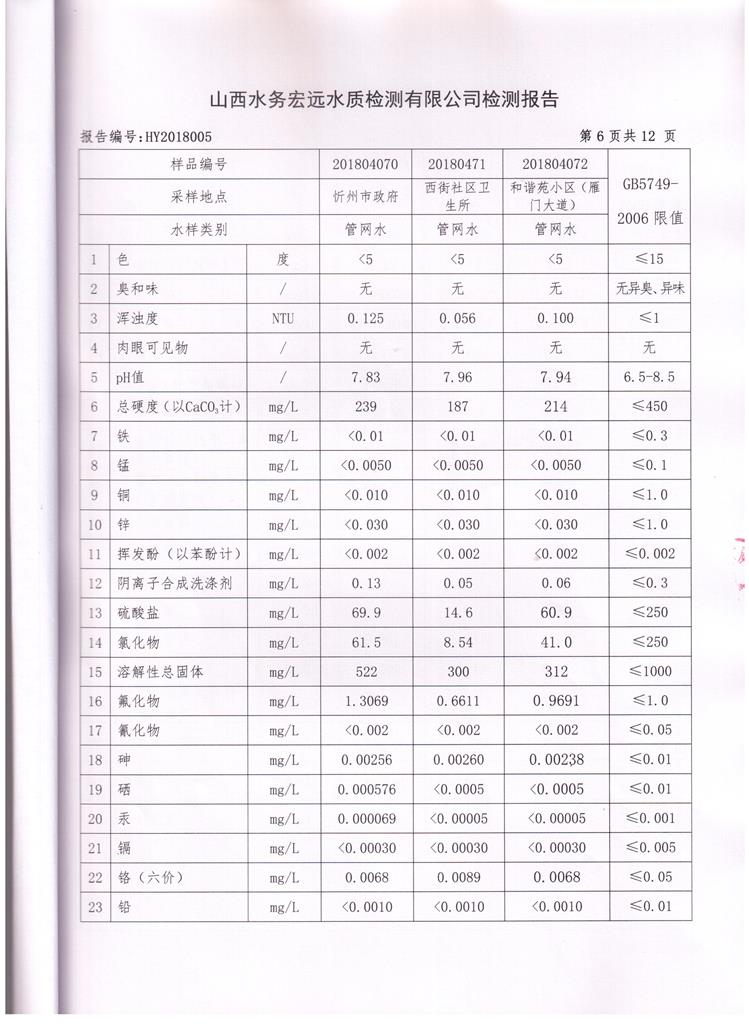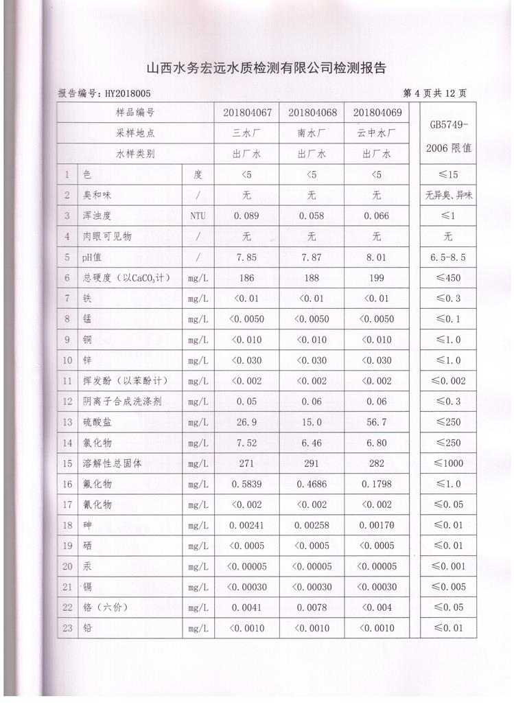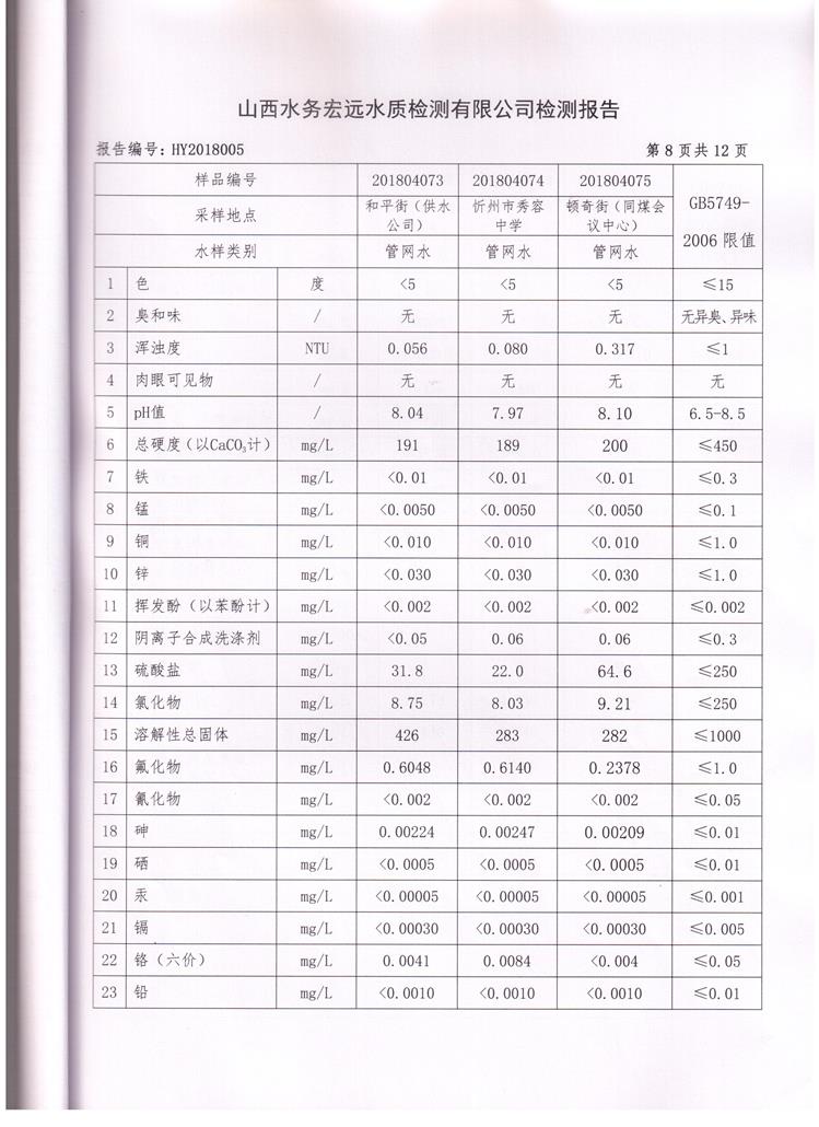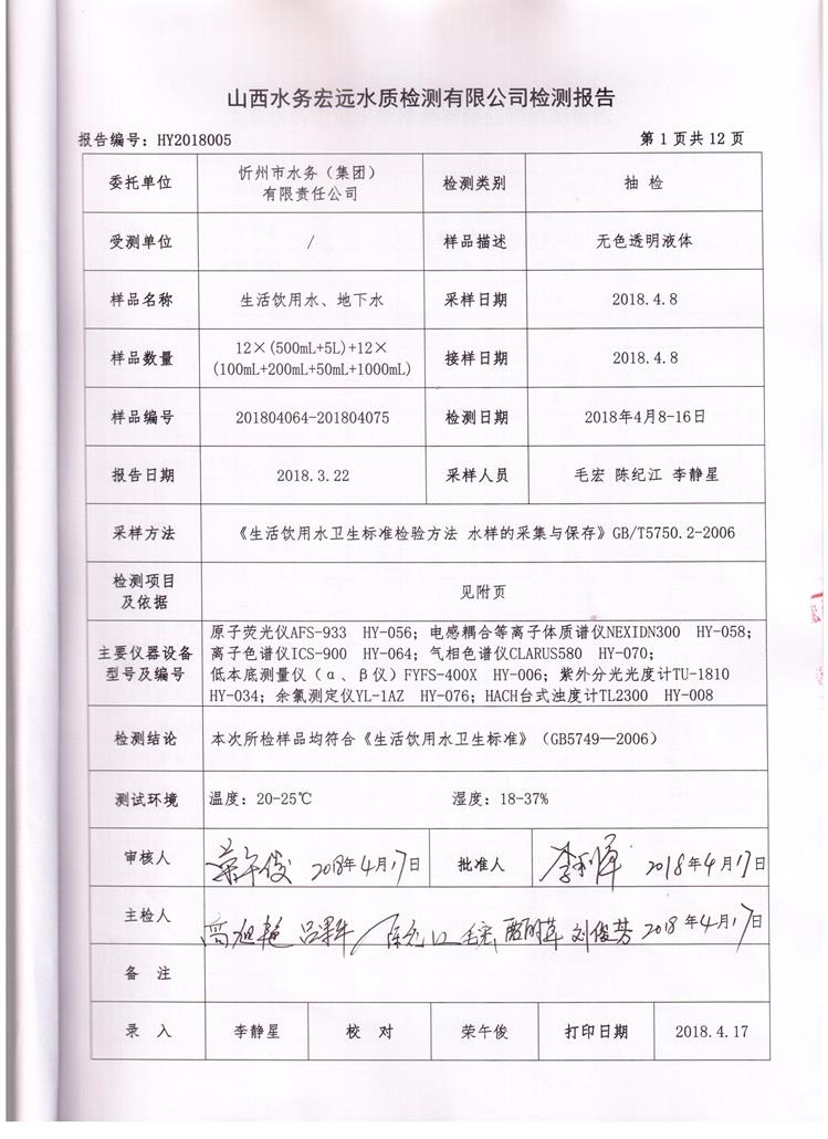 忻州城區公共供水水源水、出廠水、管網水、管網末梢水2018年4月份水質信息公示