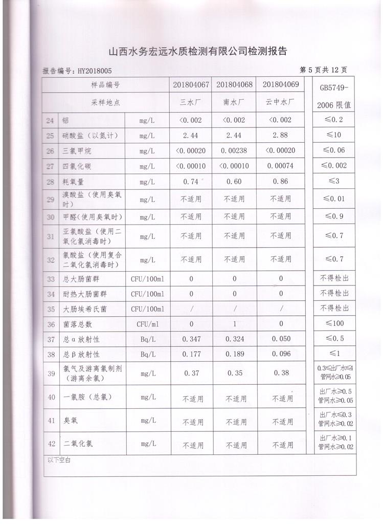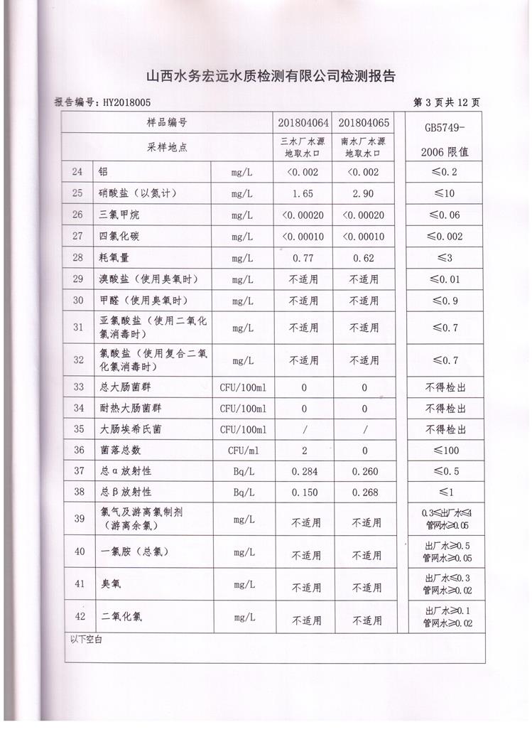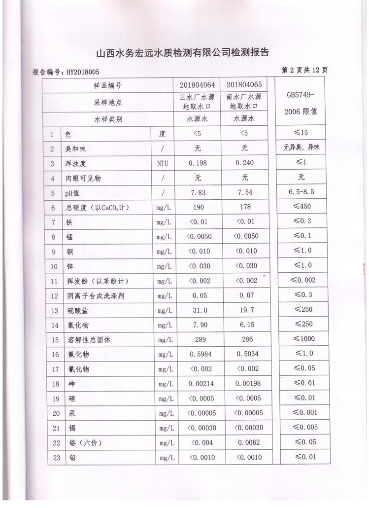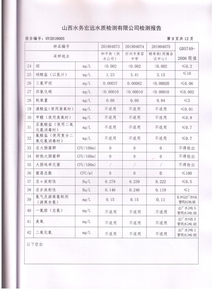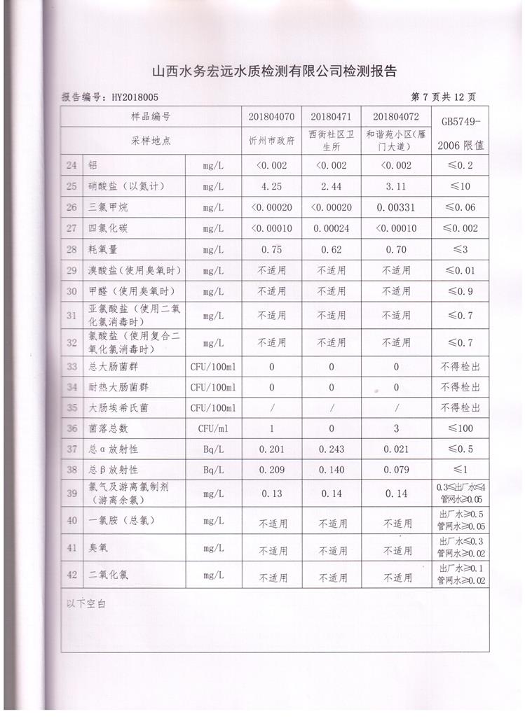 忻州城區公共供水水源水、出廠水、管網水、管網末梢水2018年4月份水質信息公示