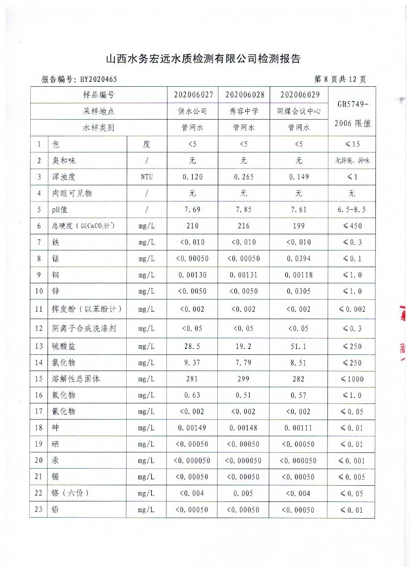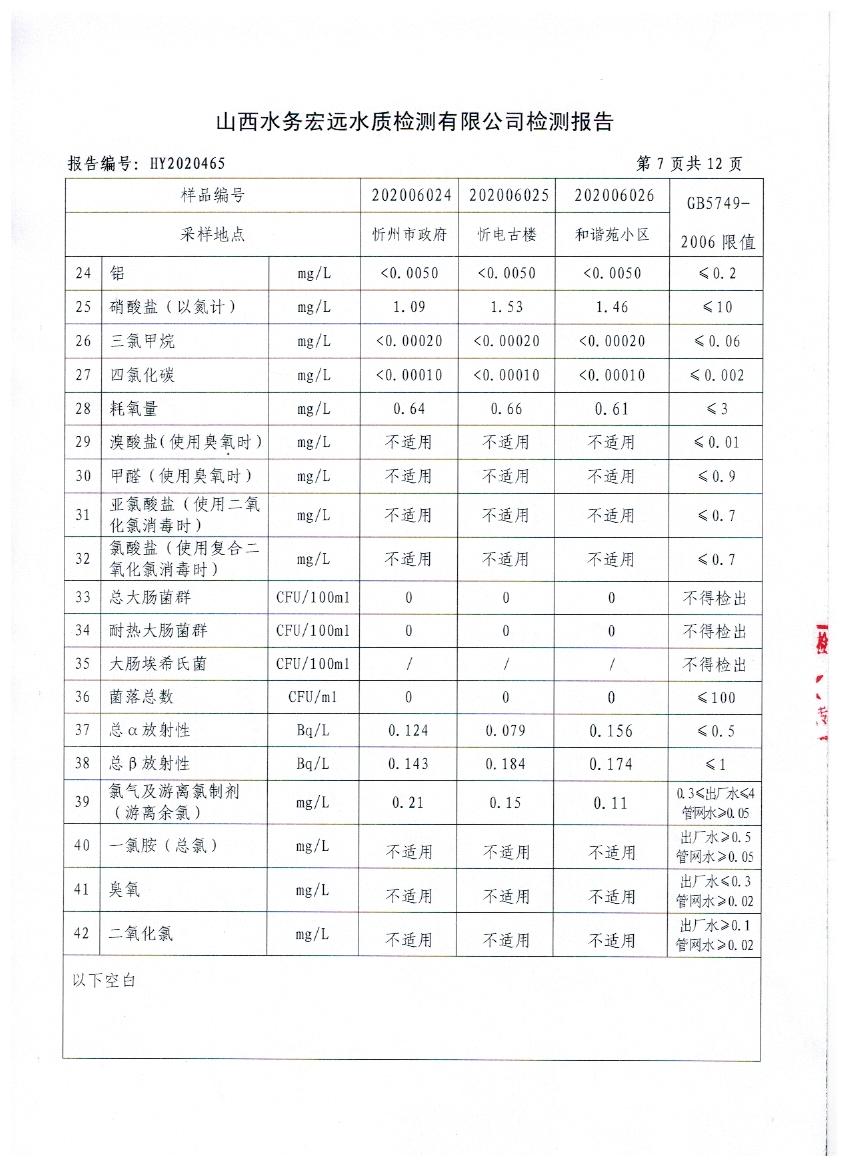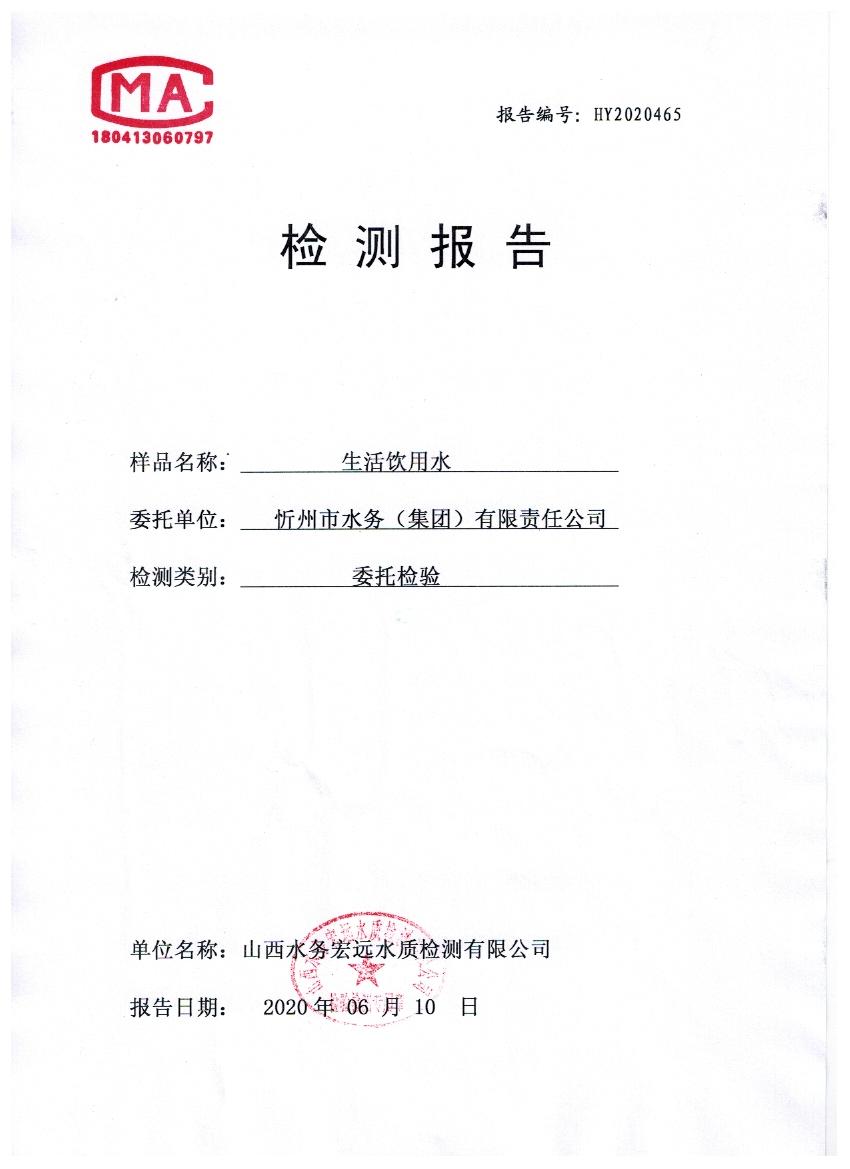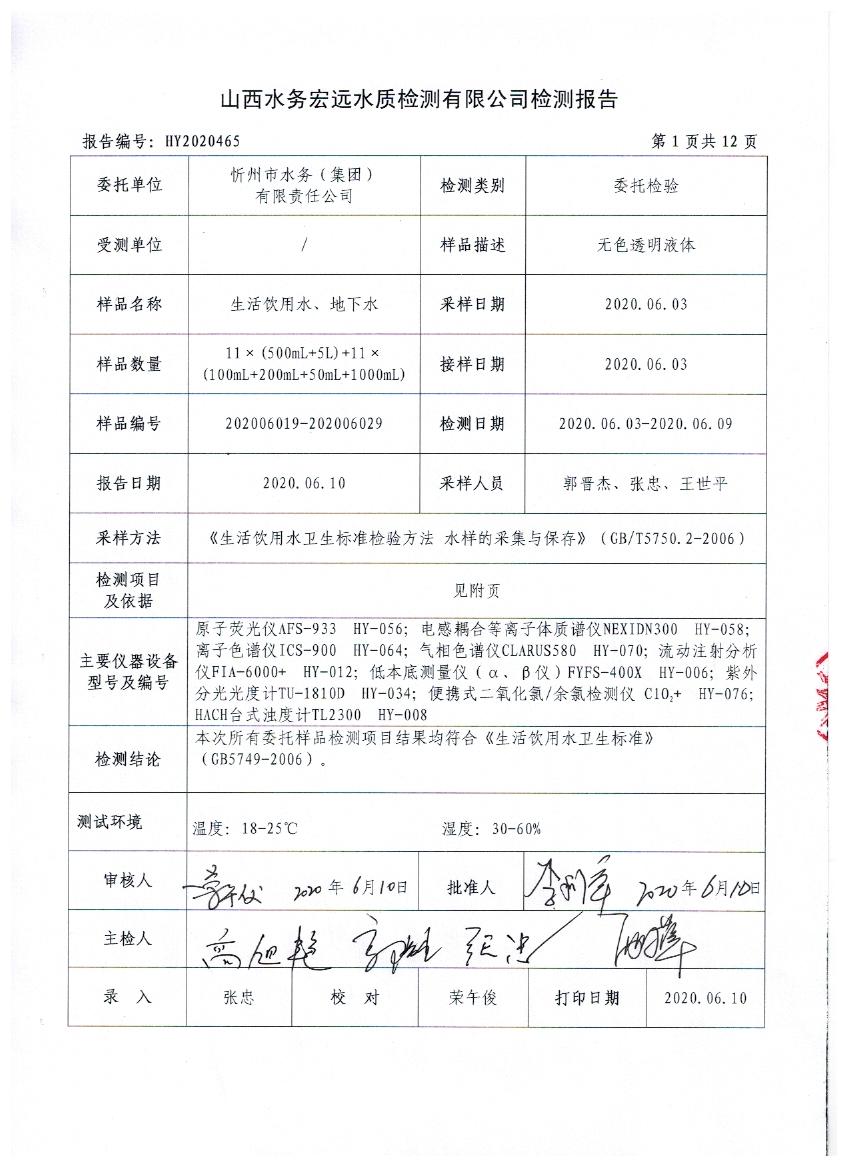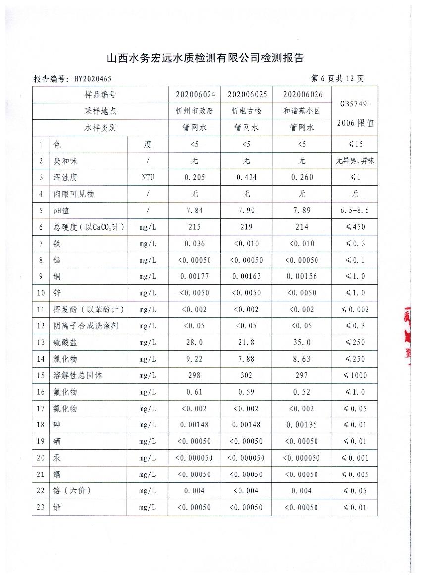 忻州城區公共供水水源水、出廠水、管網水、管網末梢水2020年6月份水質信息公示