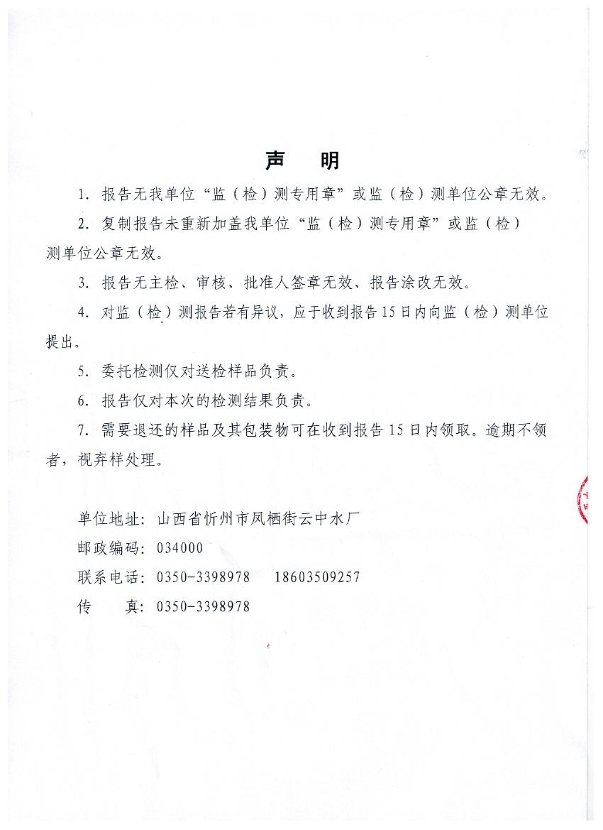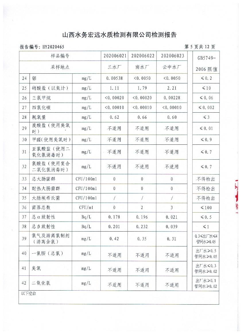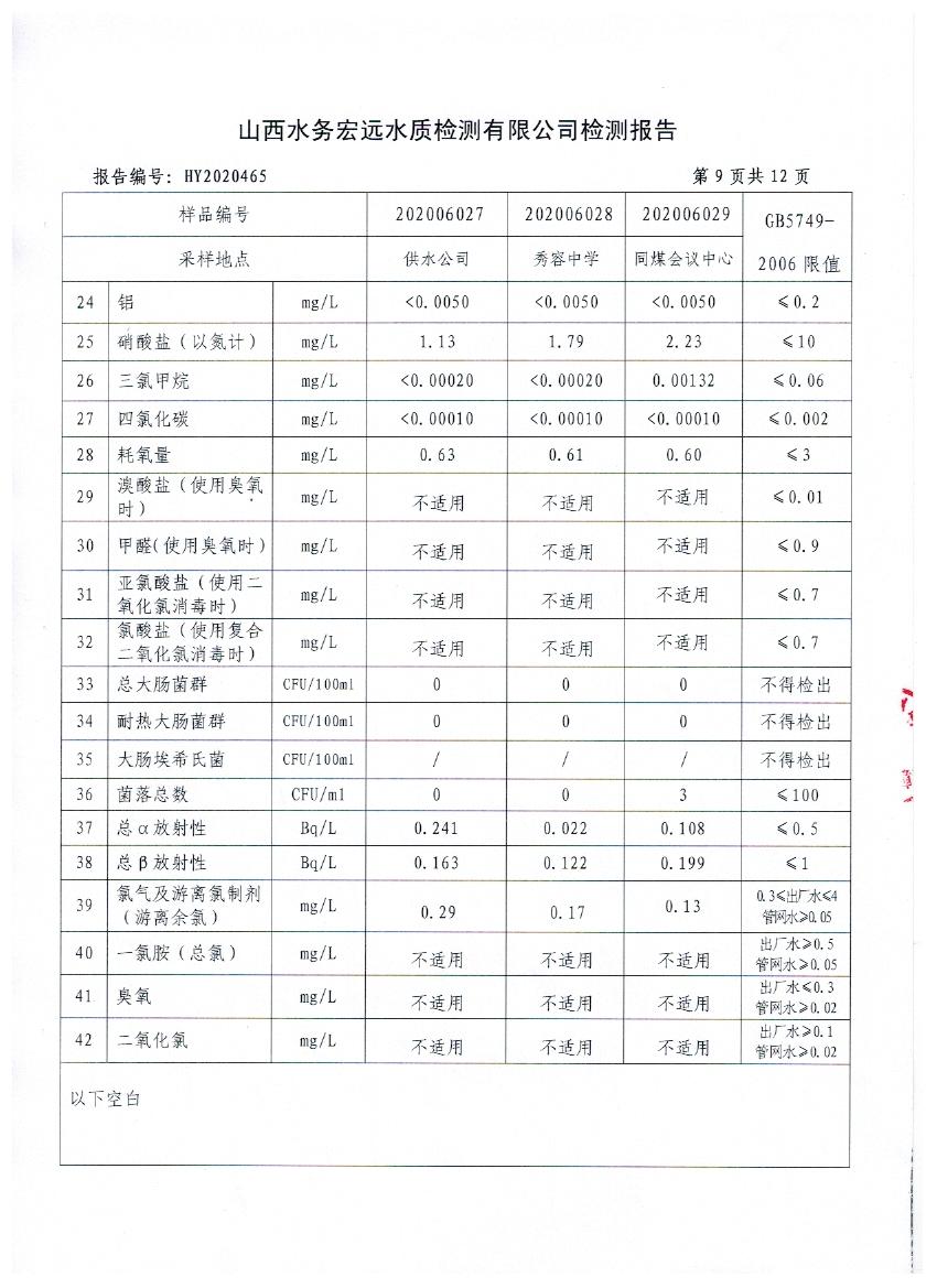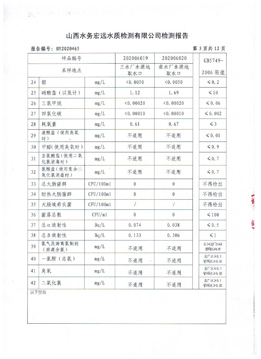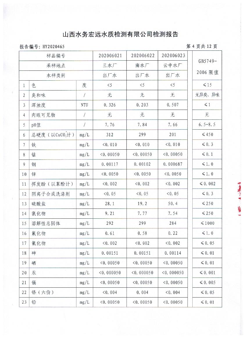 忻州城區公共供水水源水、出廠水、管網水、管網末梢水2020年6月份水質信息公示