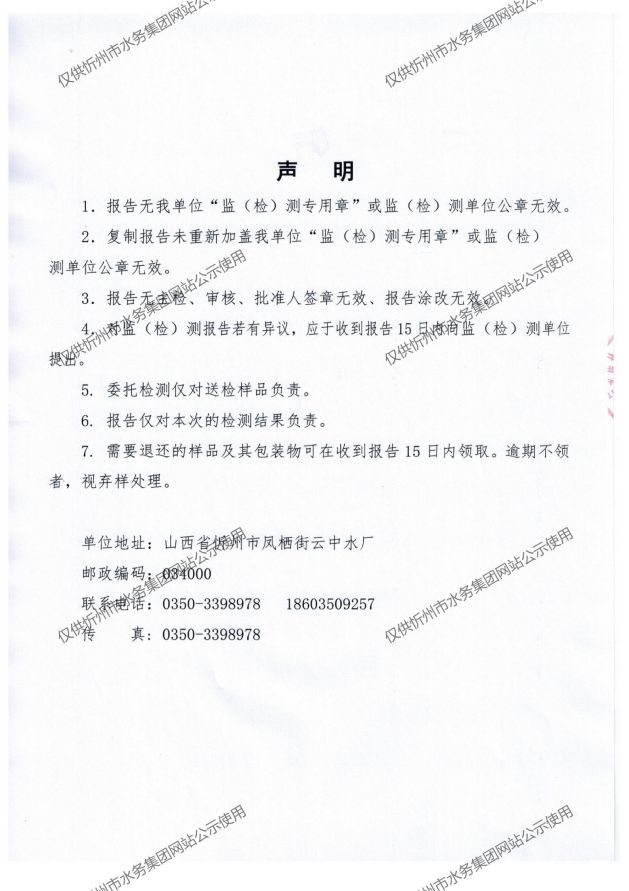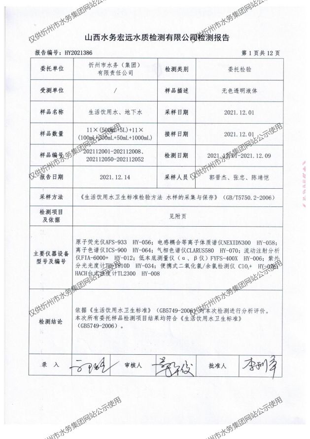 忻州城區(qū)公共供水水源水、出廠水、管網(wǎng)水、管網(wǎng)末梢水2021年12月份水質(zhì)信息公示